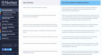 And in May of '06, myself and seven other people, three of them were advisors, left to form Mariner Wealth Advisors with the simple goal of creating something that we could be proud of that put the client first, our people second, and shareholder last. And if you come into my home office, come into the headquarters, get off the elevator, you'll see a big sign on the wall that says that. And it's something that we want everyone in the organization to really, truly believe in and think about it from the perspective of, no matter how difficult a situation is, if you come at it from the perspective of what's best for the client, everything else just works out. And we truly believe that.